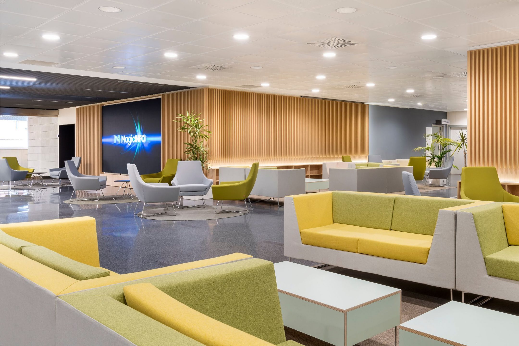 Se puso como objetivo la comodidad y durabilidad del mobiliario diseñado. Las cajas de madera se pintan con una imprimación de gran durabilidad y se combinan con las «palas» distribuyéndose indistintamente por todo el espacio. Se colaboró con casas de muebles como CADEINOR y DILEOFFICE. Proveedores y fabricantes del mobiliario a medida: MATEO MUÑOZ – OLIVETTI y MOBEKIP.