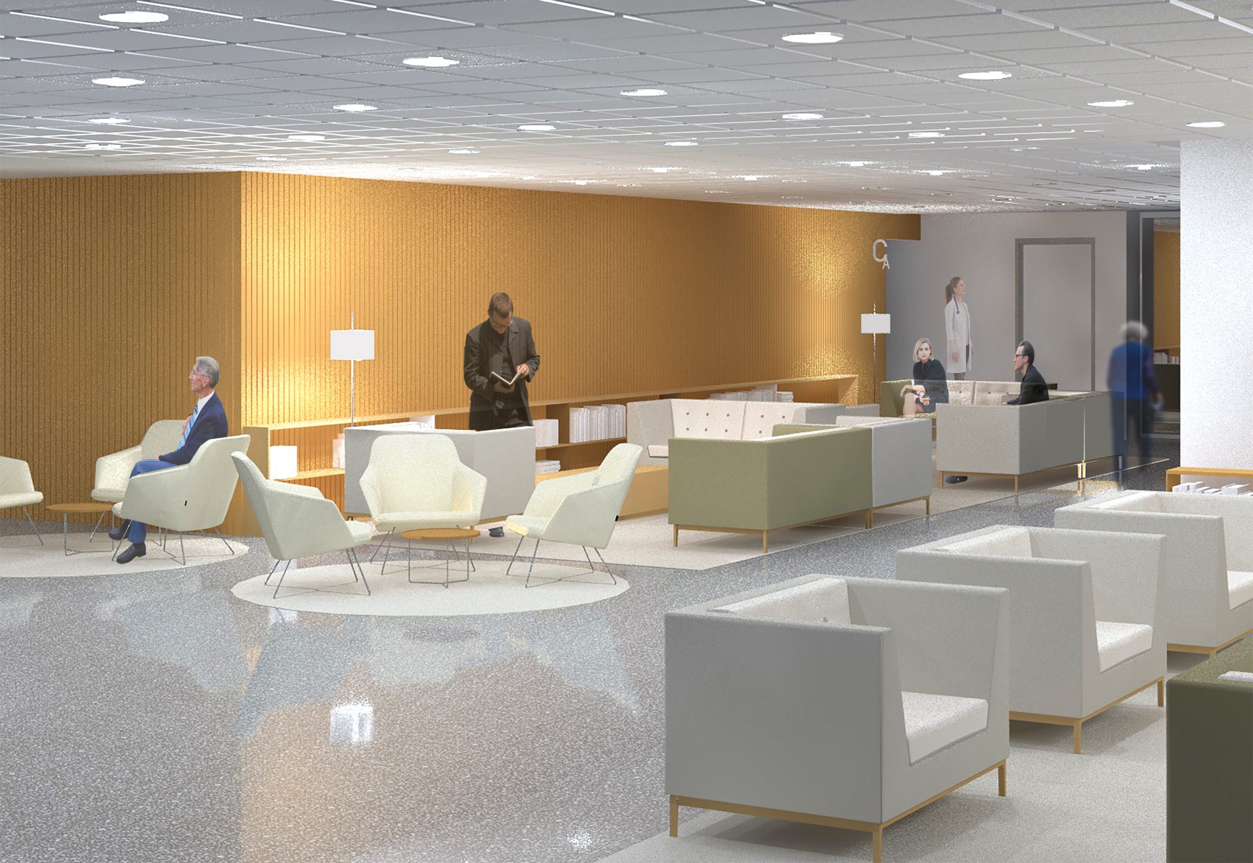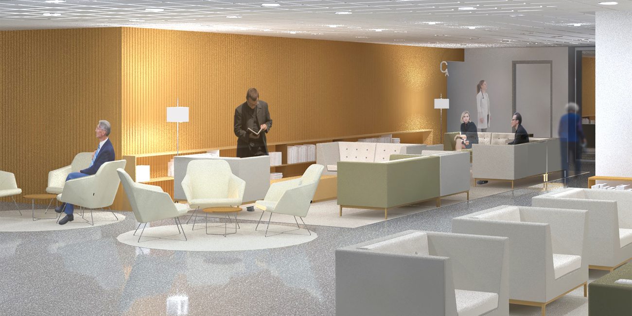 Se apuesta por el uso de la madera, que aporta calidez a este tipo de espacios que normalmente se caracterizan por la frialdad e impersonalidad. Se busca reinventar la forma de esperar en los hospitales, creando una experiencia acogedora y agradable. En la planta superior se realizó un diseño «premium» por tratarse de una zona más exclusiva.