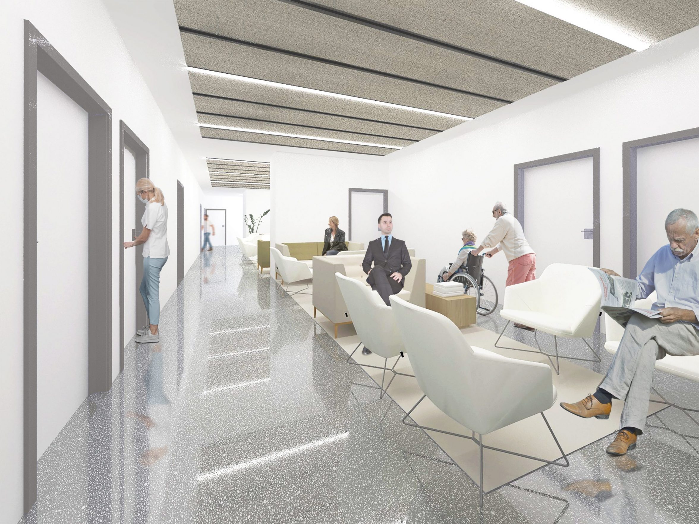 Se necesita proyectar un espacio cómodo y agradable para los usuarios de dicho hospital, de la mano con materiales nobles y de calidad que aporten a los visitantes un plus de bienestar en sus visitas médicas.